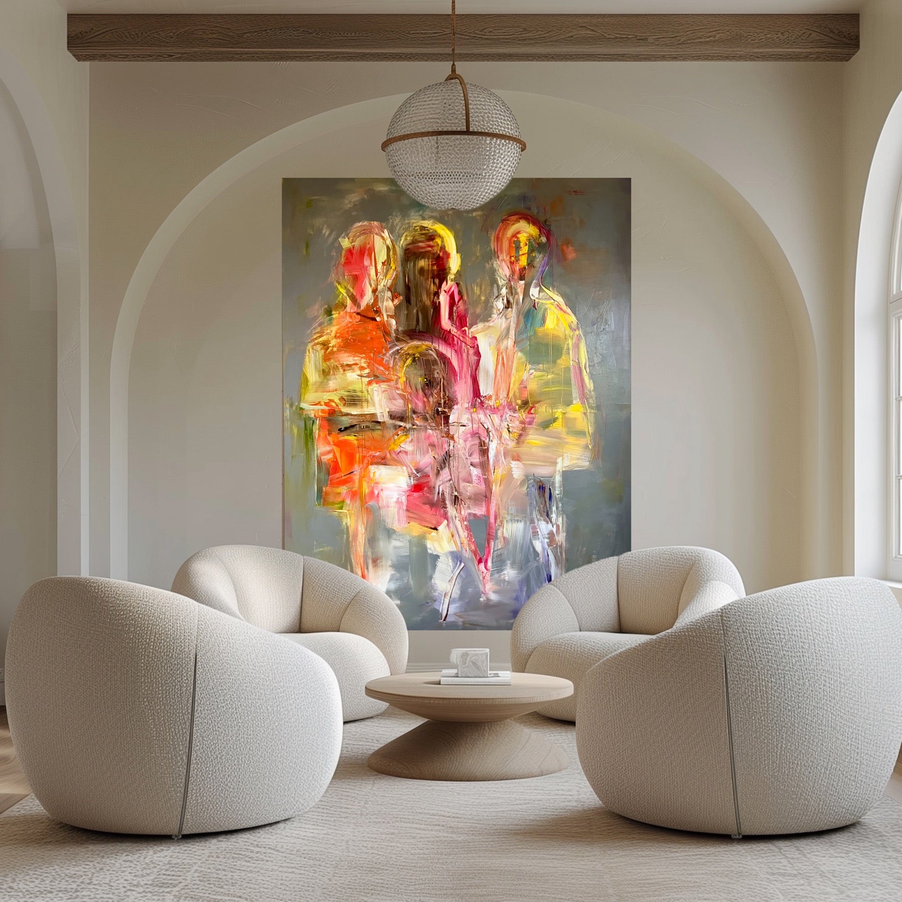 Jeg har flere malerier klar i atelieret, som kan lånes med hjem, og jeg maler også på bestilling, hvis du har specifikke ønsker til størrelse og stil.