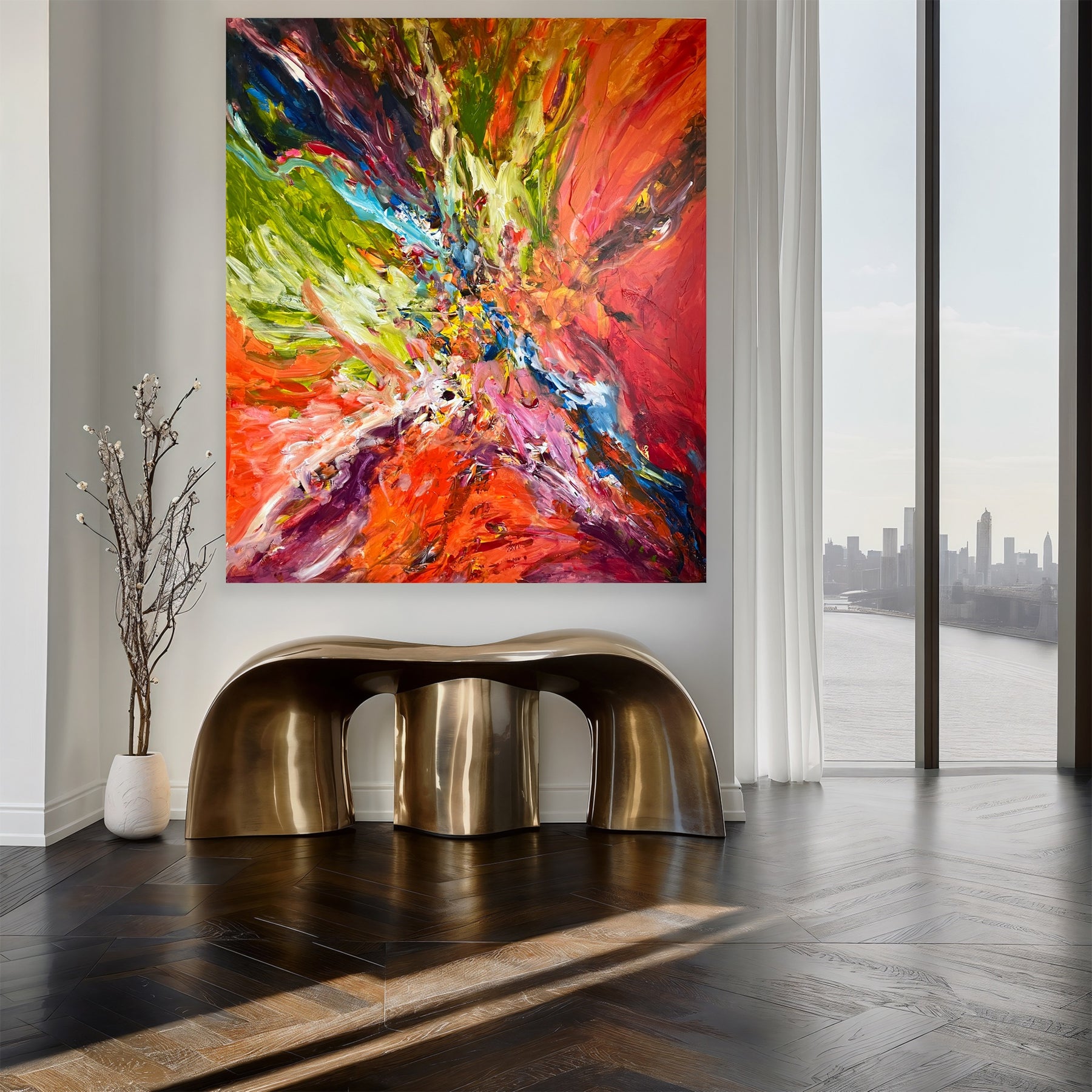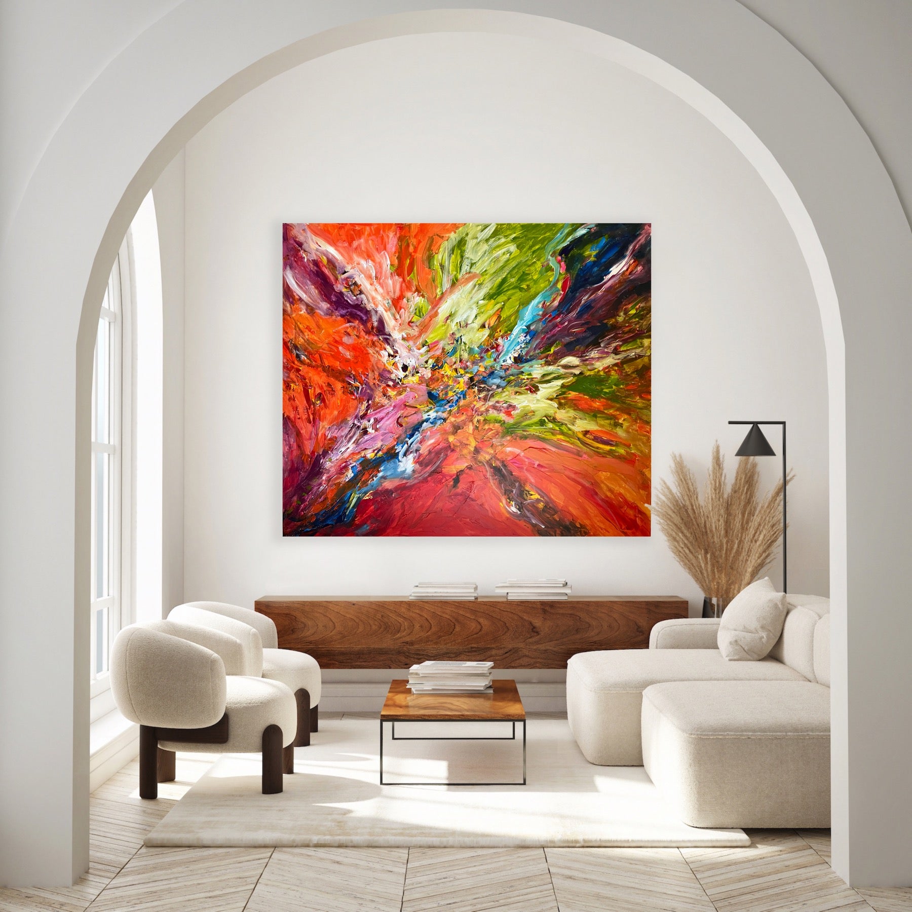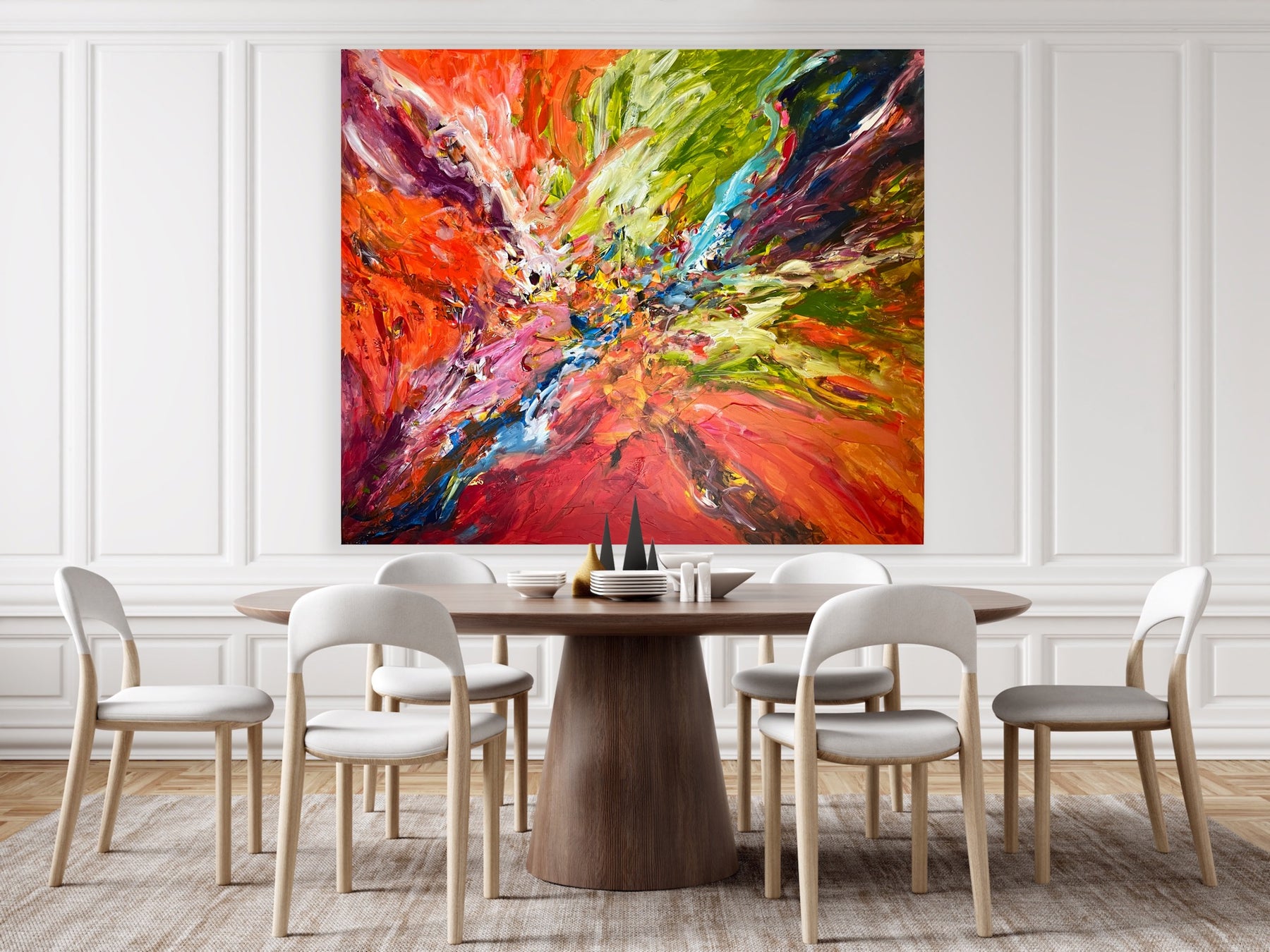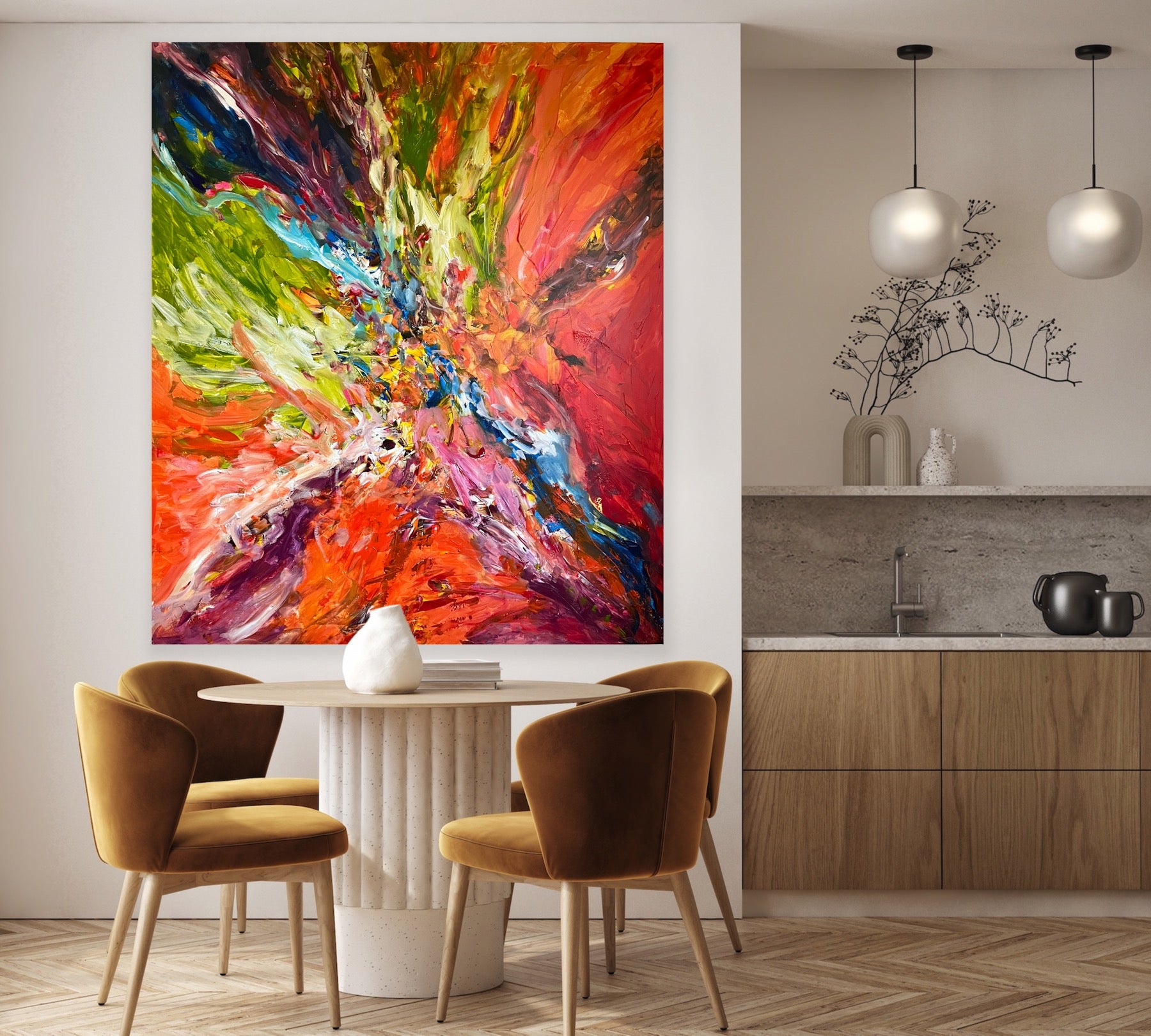Farver - glæde - dynamik er kendetegnende for Lones malerier. Jeg vil følge hende og sikkert købe flere malerier, da jeg tror på en fremtid med dem og hende som kunstner.