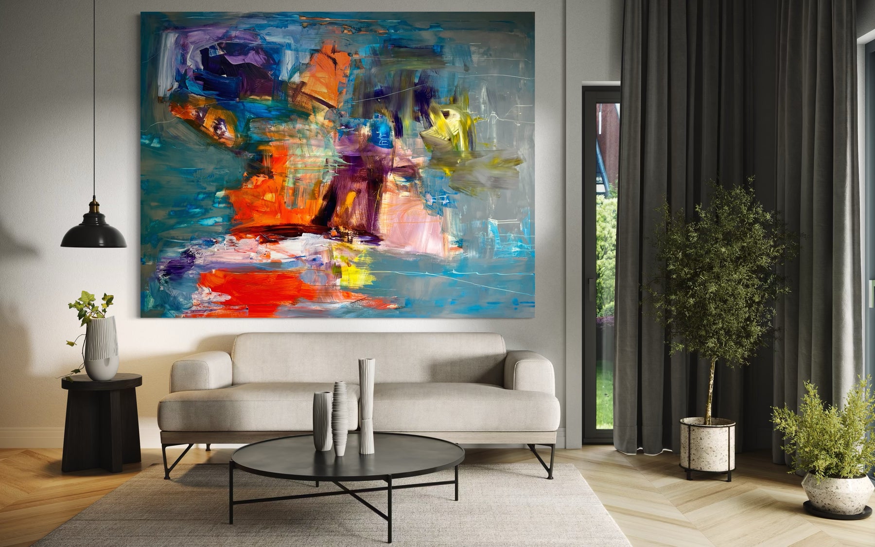 Jeg har flere malerier klar i atelieret, som kan lånes med hjem, og jeg maler også på bestilling, hvis du har specifikke ønsker til størrelse og stil.